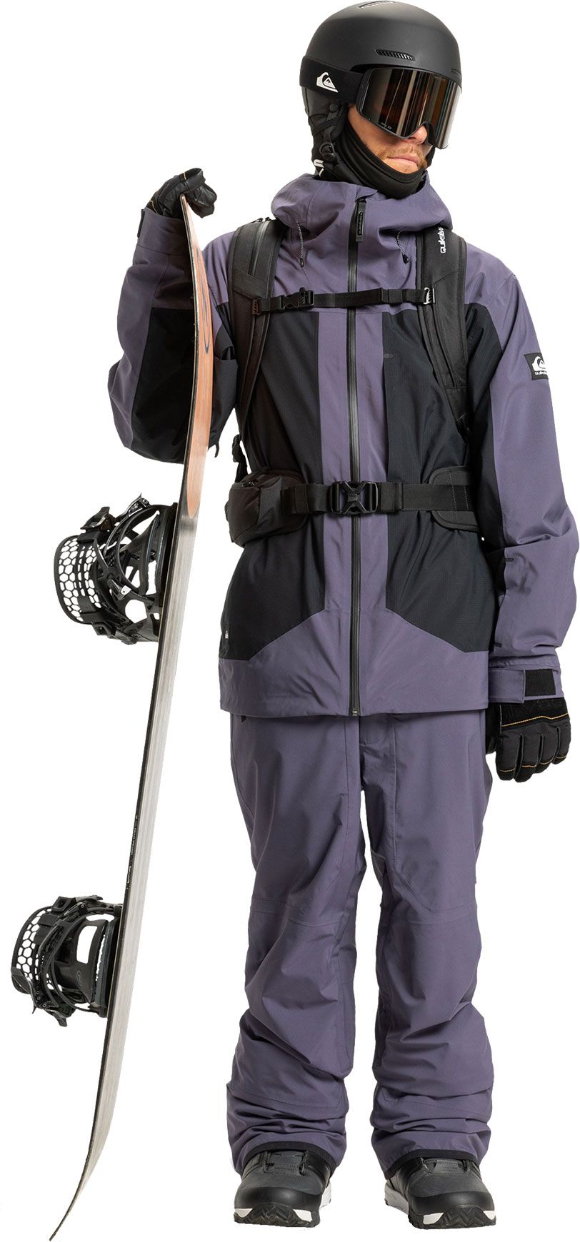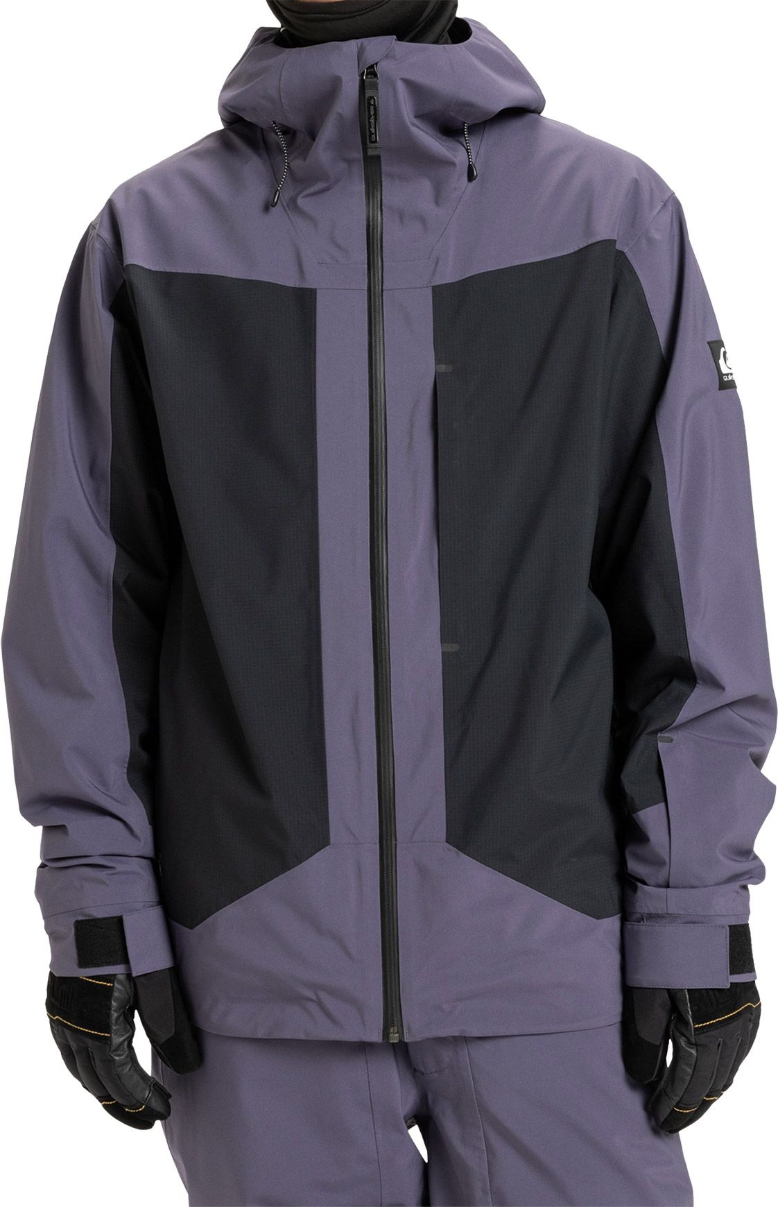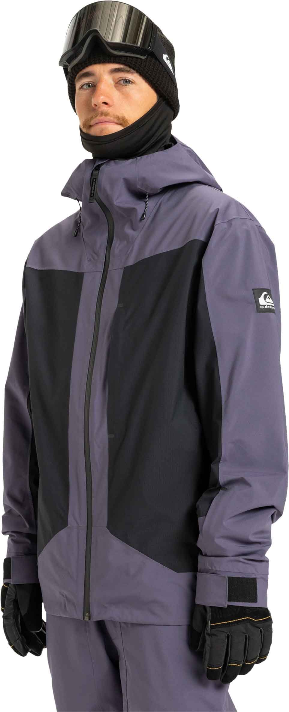Veste de ski/snowboard homme Quiksilver Ultralight Stretch 20K Graystone, membrane DryFlight® 20K, isolation WarmFlight® x3 Primaloft Active, tissu stretch, coutures étanchées, 60 % fibres recyclées, capuche compatible casque, jupe pare-neige et ventilations mesh.
