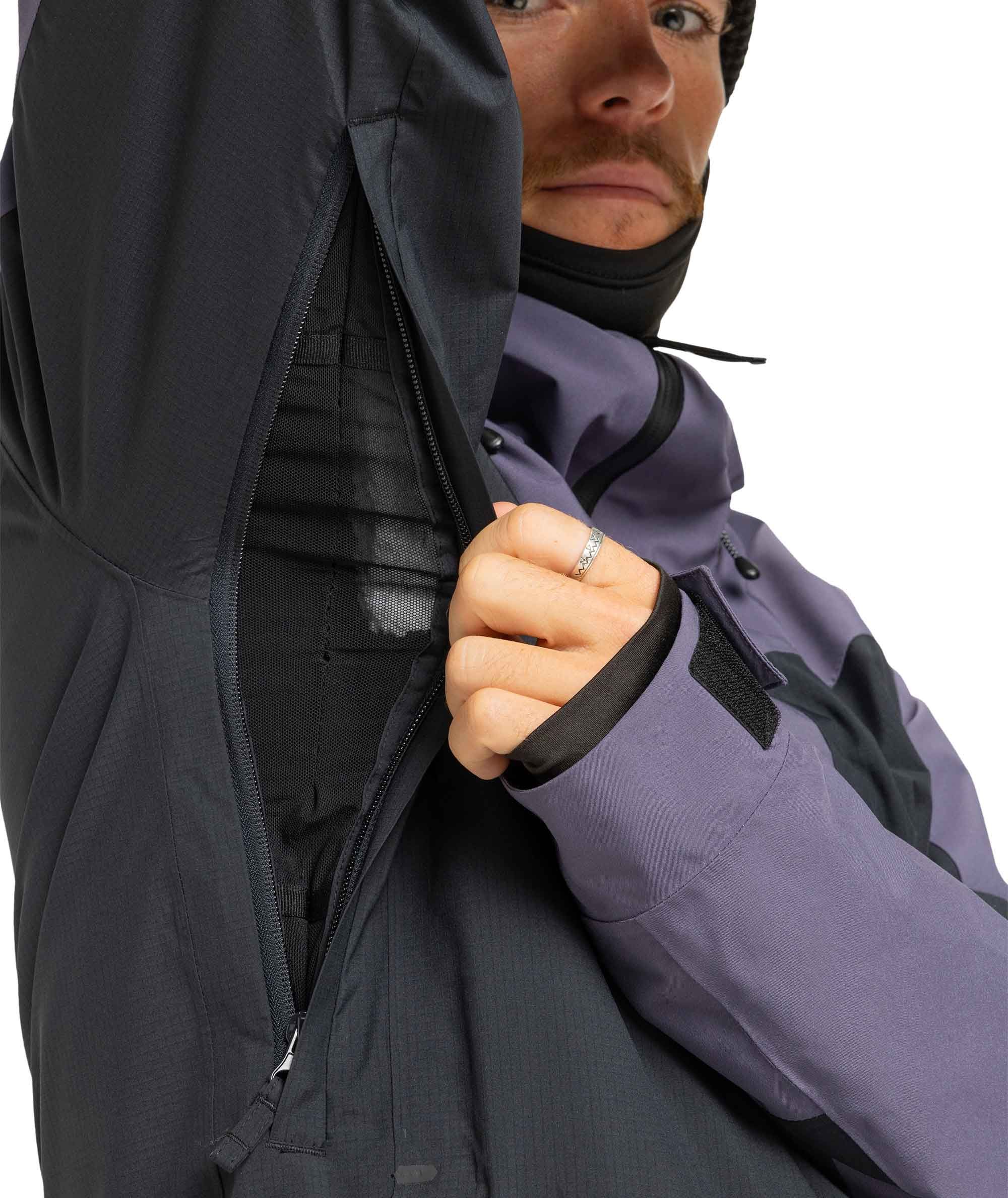 Chaude, souple et légère, la doublure PrimaLoft® Silver Active équipe cette veste qui dispose également d’une capuche fixe ajustable par cordon et compatible casque, d’une jupe pare-neige, et d’un ensemble de rangements : poche forfait sur manche, poche sac à dos compatible, poche poitrine, deux poches chauffe-mains, poche média interne et grande poche filet interne. L’aération est permise par des ouvertures doublées mesh sous les aisselles, tandis que des manchettes avec guêtres stretch intégrées finalisent l’équipement.