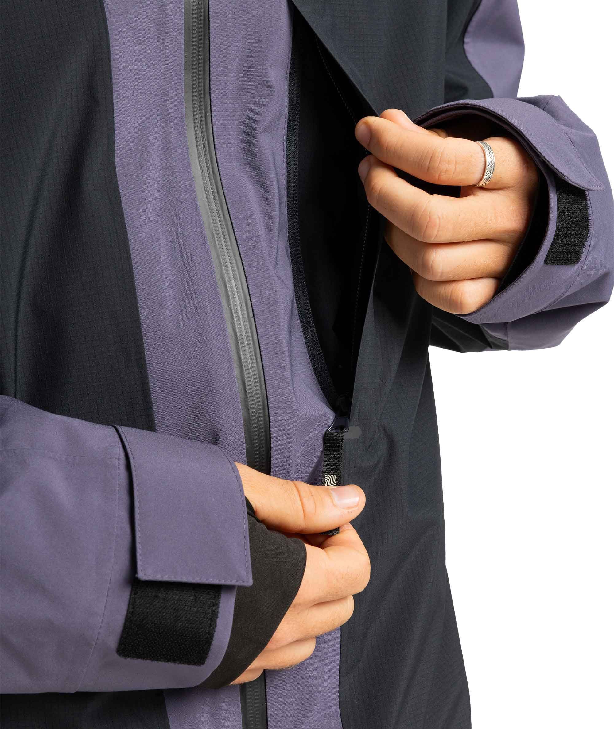 Une mobilité totale est assurée par le fit contemporain et la composition stretch du tissu. L’étanchéité des coutures est totale, tandis que les effets personnels sont protégés par des zips YKK® conçus pour résister à l’eau.
