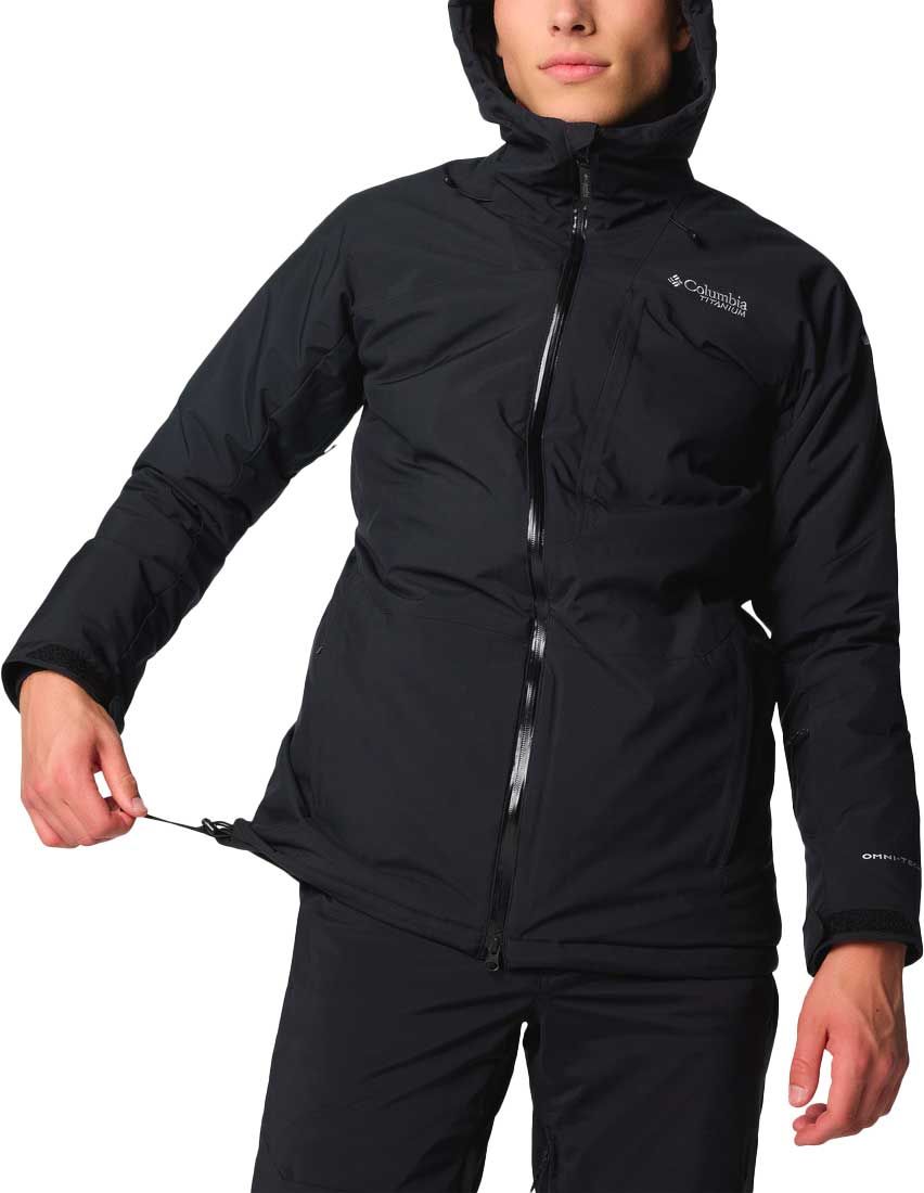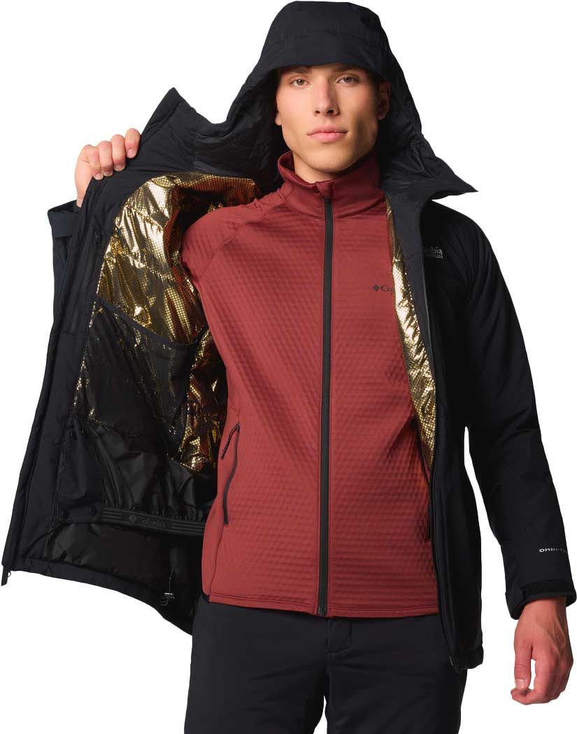 La veste de ski Columbia Winter District III Jacket imperméable Omni-Tech™ stretch et respirante, coutures scellées, isolation Omni-Heat™ réfléchissante, jupe pare-neige et capuche ajustable pour homme.