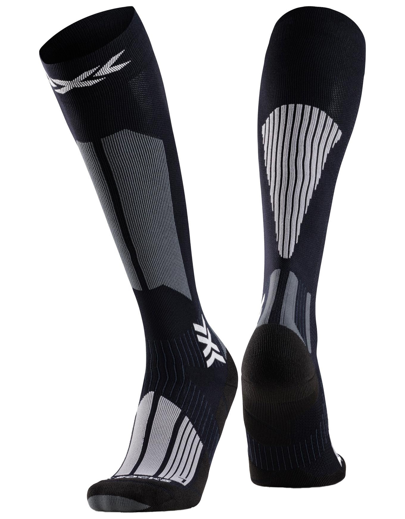 Chaussettes ski de randonnée femme X-Socks Ski Touring Perform OTC Black/Light Grey, montantes et épaisses avec protection tendon Achille, coussinets amortissants, bande Suppronation® et canal AirConditioning Channel® pour maintien, thermorégulation et respirabilité.