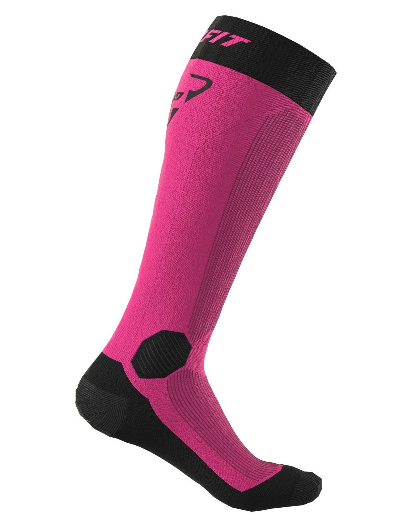 Chaussettes ski de randonnée Dynafit Speed Dryarn Flamingo : ultralégères et respirantes en Dryarn®, elles évacuent l’humidité, assurent une légère compression et protègent orteils, talon, cheville pour l’ascension.