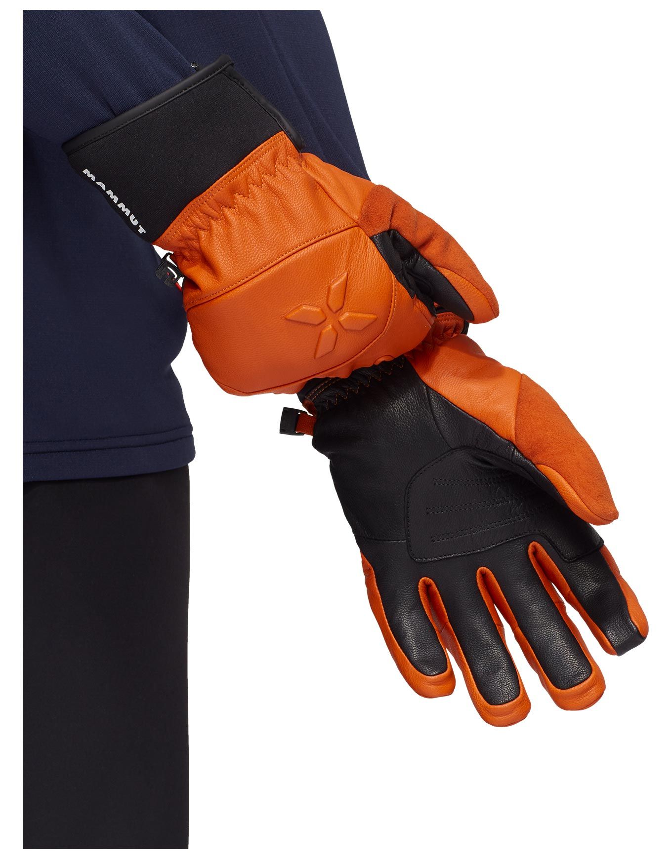 Gants Mammut Eiger Free Glove Solar Dust Black en GORE-TEX pour ski de randonnée et alpinisme, isolés PrimaLoft® Silver, paume cuir de chèvre, coupe préformée.