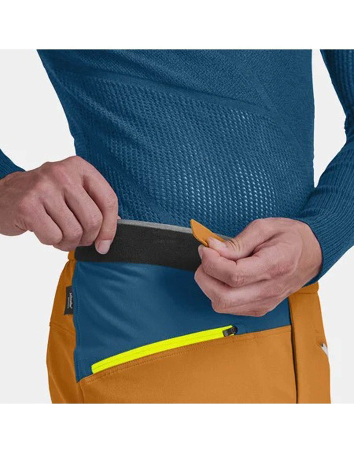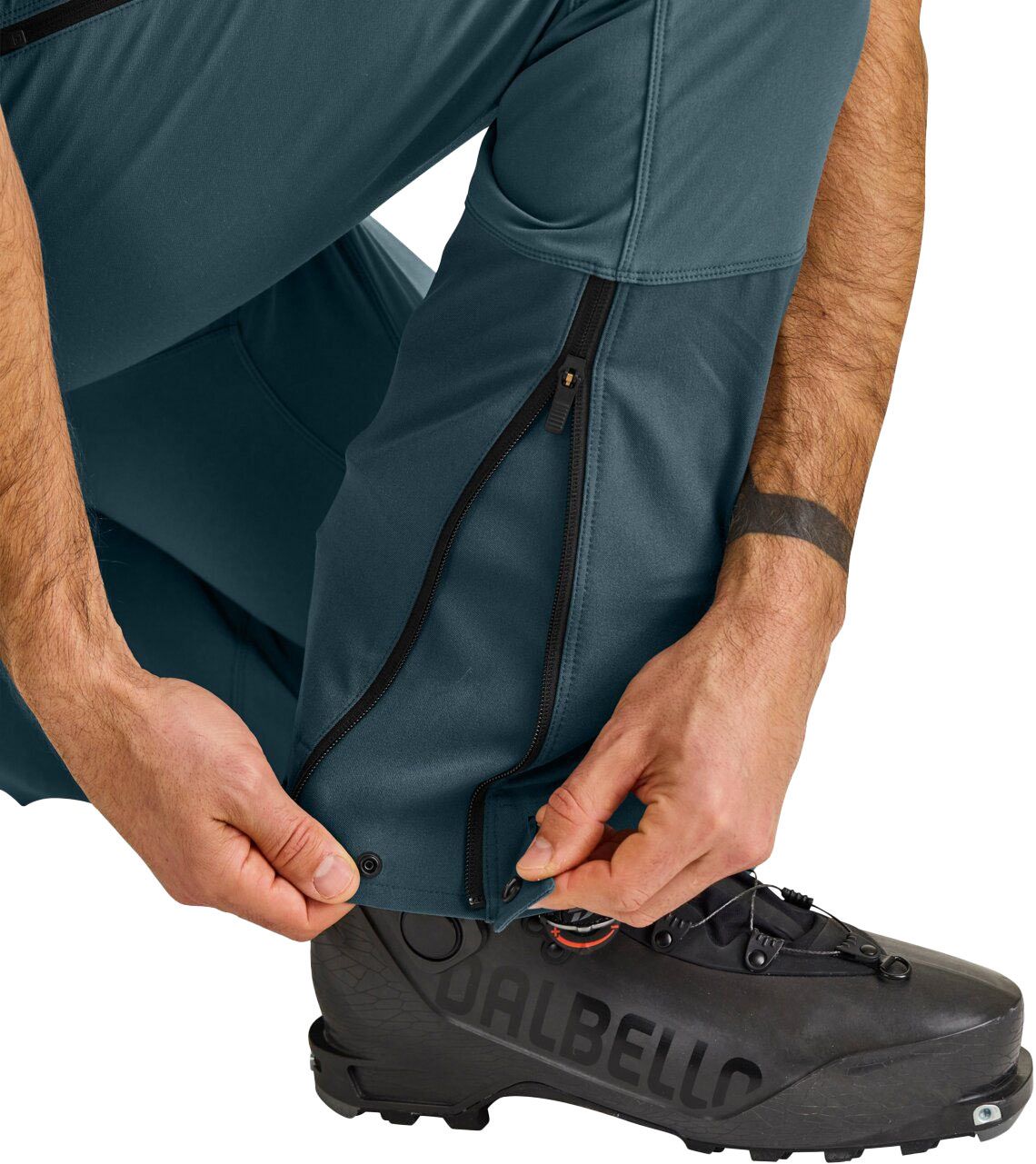 Une poche thermo-soudée est positionnée sur la cuisse, deux poches latérales doublées accueillent les mains, des guêtres réglables bloquent l’intrusion de la neige et des renforts internes protègent les bas de jambes des tranchées de carres. Cette combinaison de fonctionnalités pertinentes, de composants techniques minutieusement choisis et d’une silhouette sportive lui a valu une distinction lors des ISPO Awards.