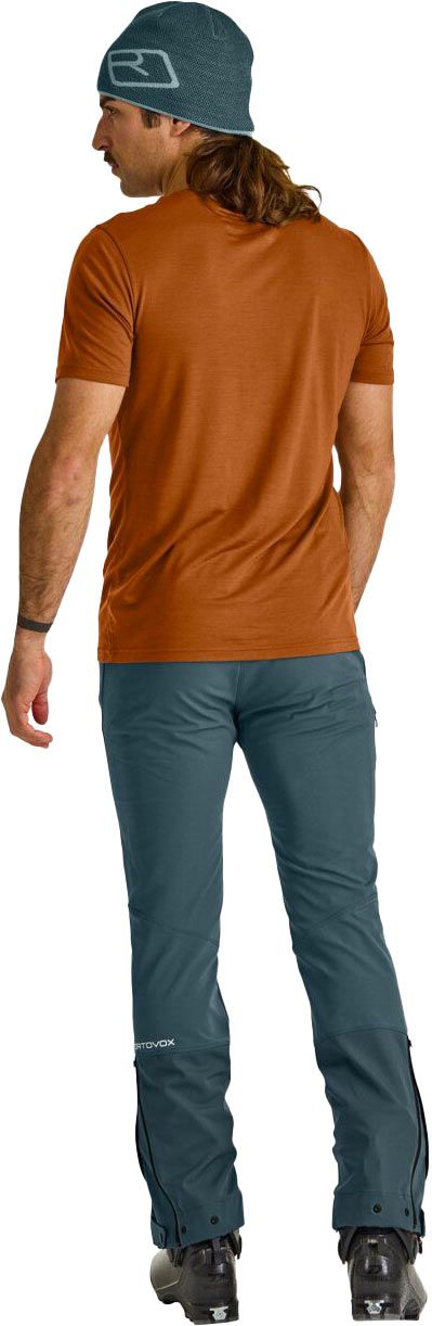Pantalon technique Ortovox Col Becchei Pants Black Raven pour homme, conçu pour le ski de randonnée : respirant, résistant à l’eau et isolant avec guêtres ajustables et renforts intérieurs.