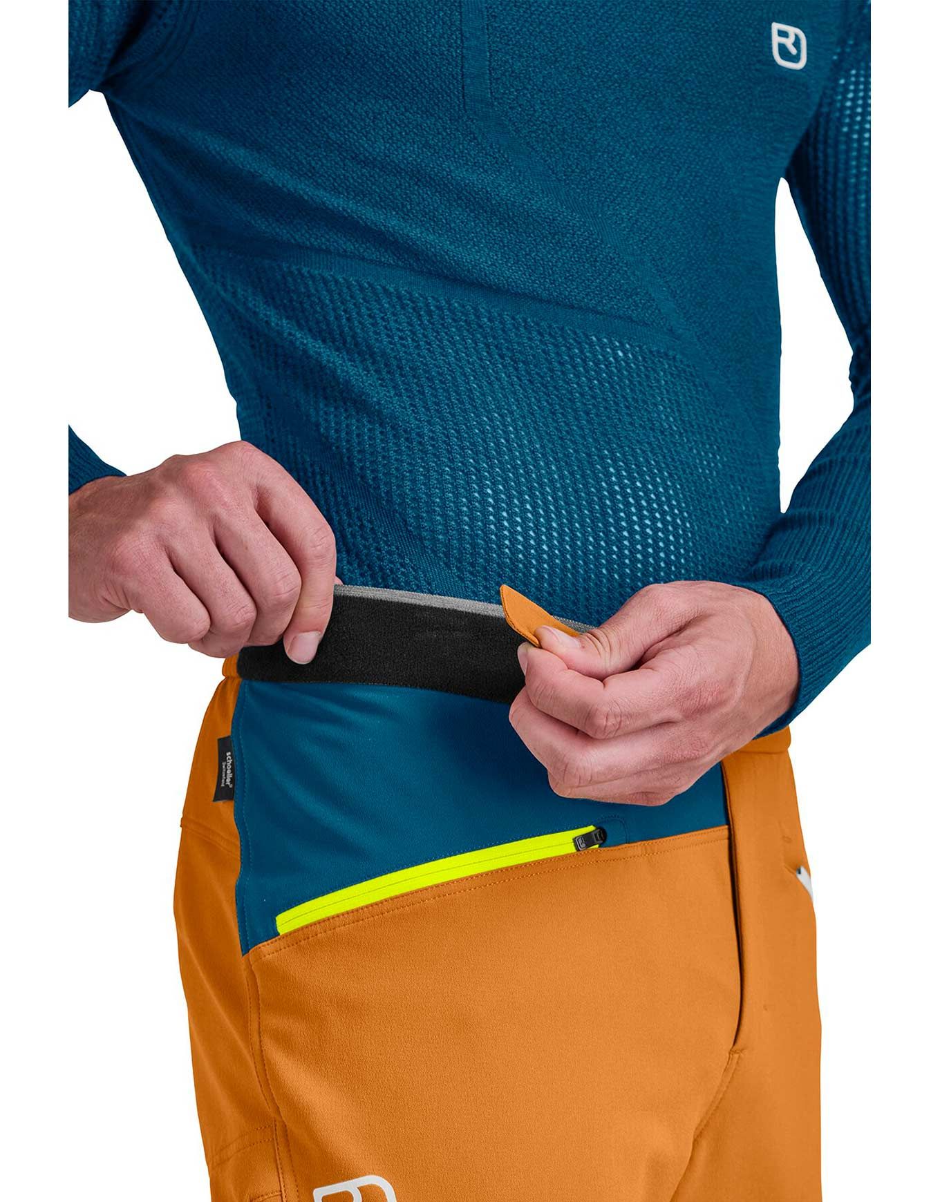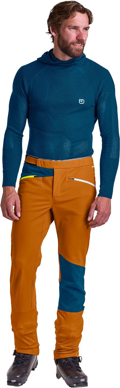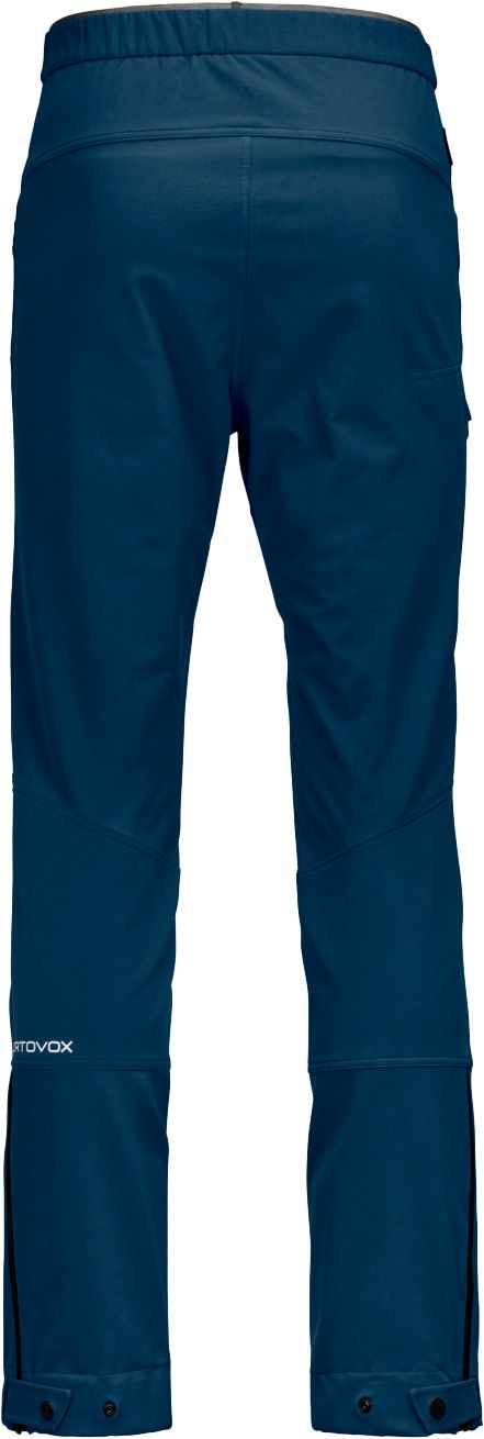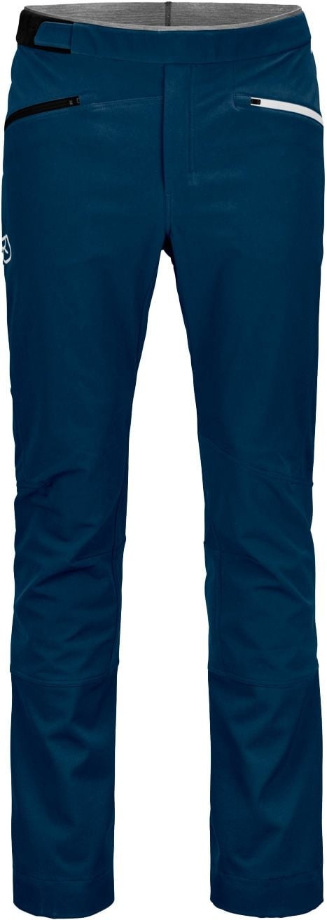 Pantalon technique Ortovox Col Becchei Pants Deep Ocean pour homme, conçu pour le ski de randonnée par conditions changeantes. Respirant, résistant à l’eau, avec poche cuisse thermo-soudée et bas de jambe ajustables.
