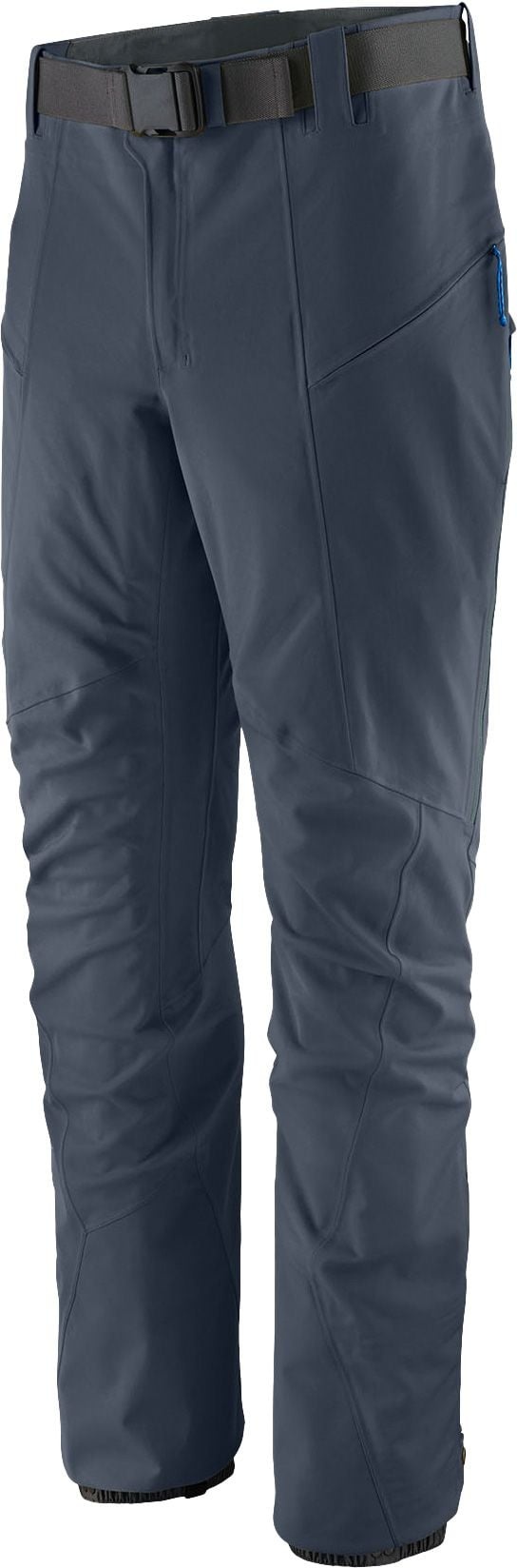 Le pantalon technique Patagonia Upstride Pants Smolder Blue homme allie respirabilité et stretch recyclé pour les ascensions rapides en ski de randonnée : coupe ajustée, déperlance durable, poches zippées et ventilations intérieures.