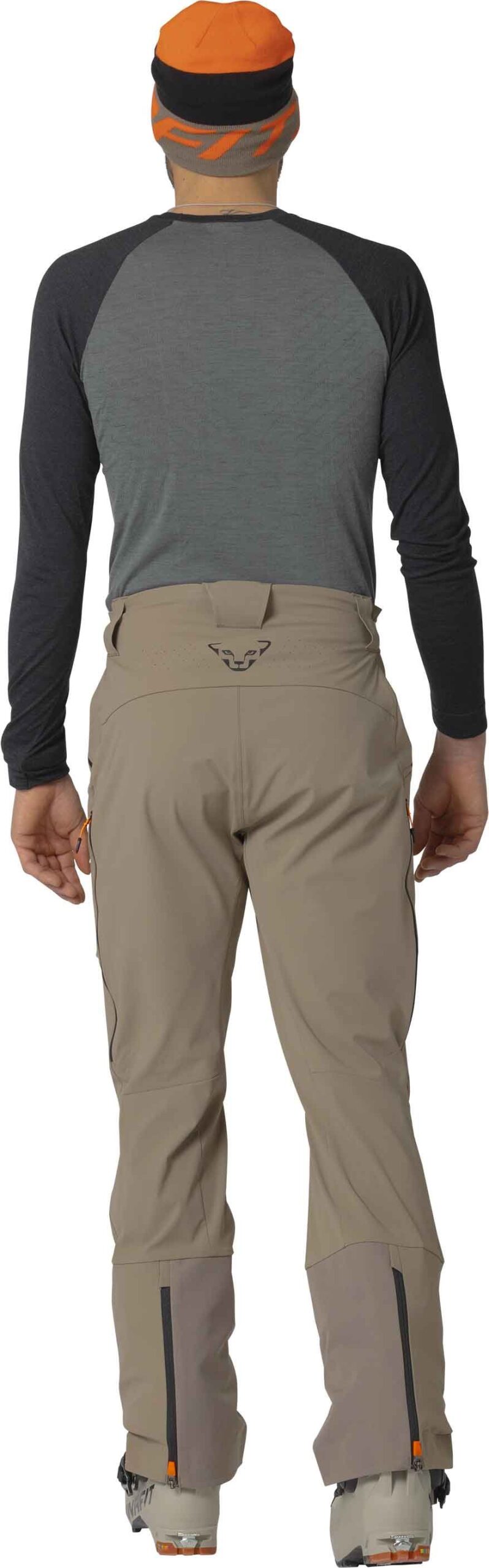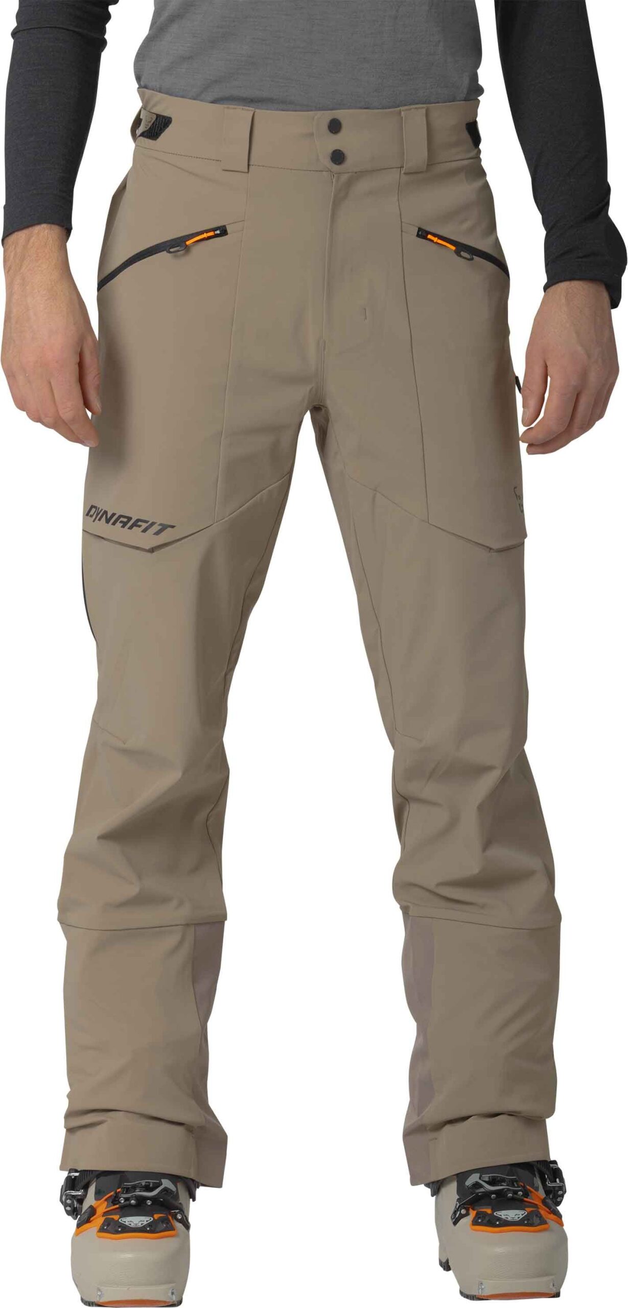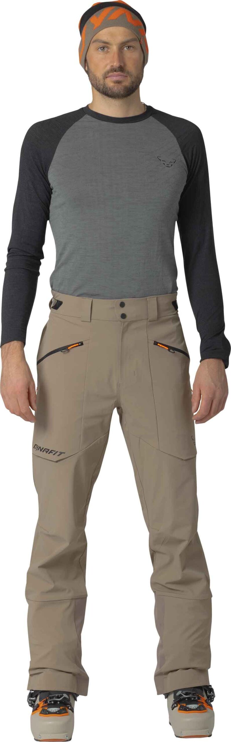 Pantalon softshell Dynafit Radical Softshell Fallen Rock homme en Dynashell recyclé, coupe-vent, déperlant et respirant, avec taille ajustable, genoux articulés, zips ventilation et poches stratégiques pour le ski de randonnée.