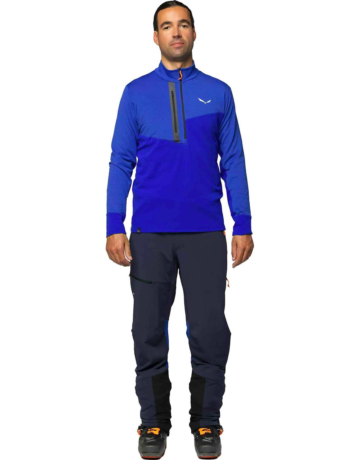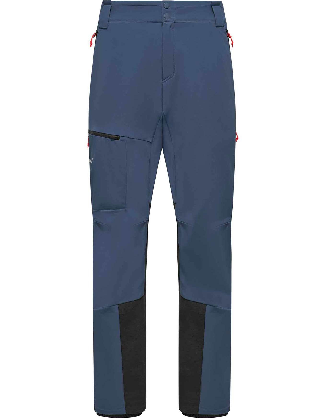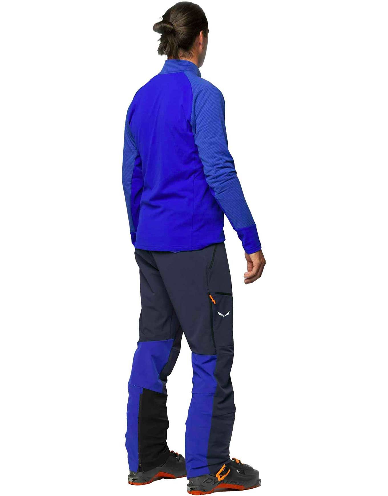Pantalon softshell ski de randonnée Salewa Sella Durastretch Dark Denim homme : tissu respirant, coupe-athlétique stretch, zips ventilation latérale, finition déperlante sans PFC, renforts bas de jambe.