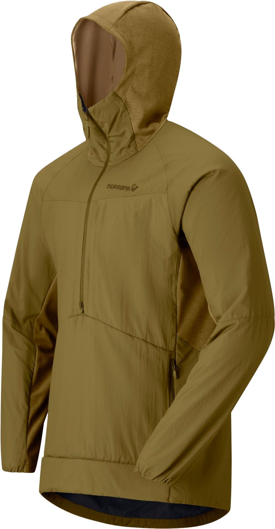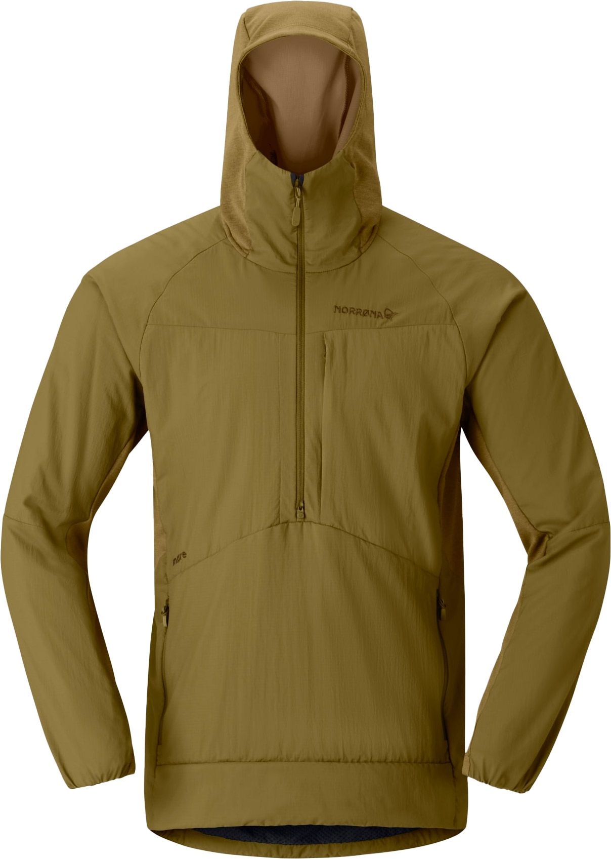 Norrona Møre Octa Zip Hood Dark Olive, couche intermédiaire homme pour freeride et randonnée, combine isolation recyclée Octa, tissu Aero200 coupe-vent et polaire warm1 extensible pour chaleur, respirabilité et liberté de mouvement.
