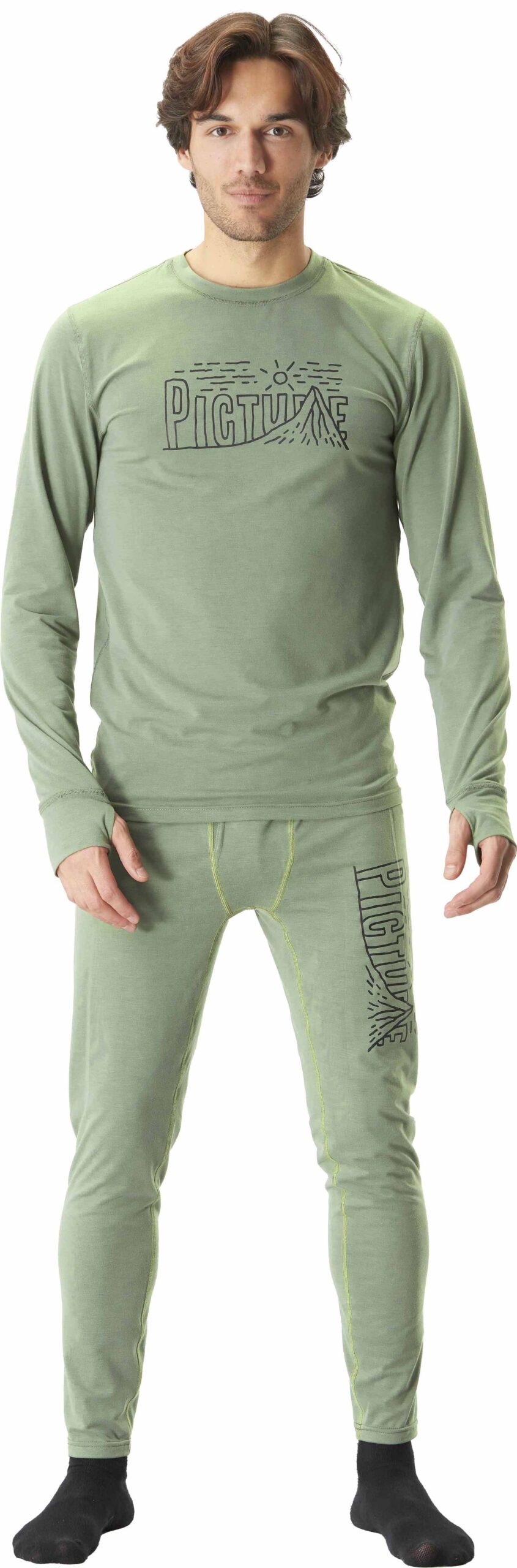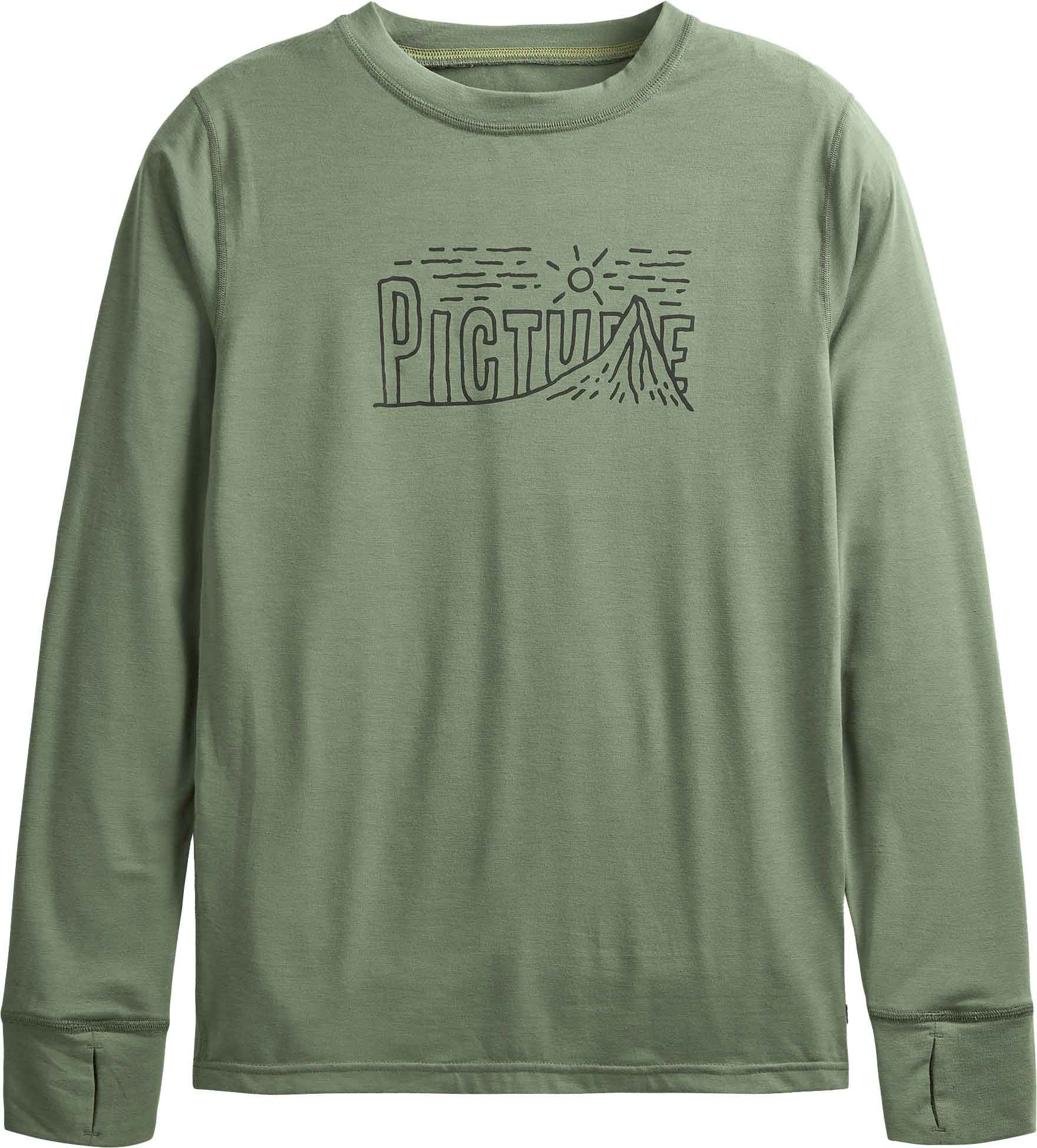 Picture Organic Clothing Nangha Laurel Wreath est un haut technique manches longues homme conçu comme première couche ski de randonnée : séchage rapide Dry Now, traitement antimicrobien Dry Feel, coutures plates pour un confort sans irritation.