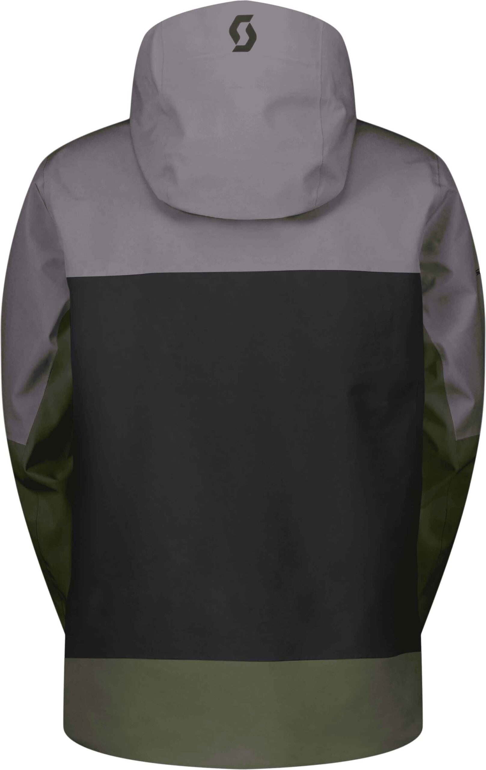 Veste Scott Explorair 3L Evening Grey Black, coupe-vent et imperméable DRYOsphere 3L en polyester recyclé, capuche casque, jupe pare-neige, poche forfait : protection légère ski rando homme.