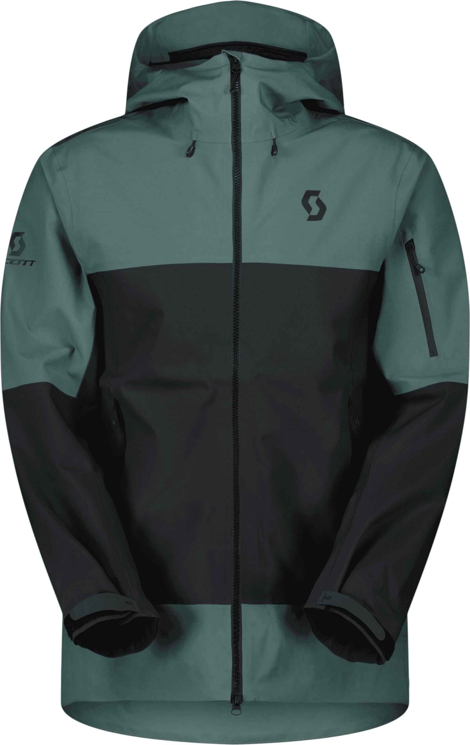 Veste de ski Scott Explorair 3L Frozen Blue Black en polyester recyclé, coupe-vent, imperméable et respirante DRYOsphere 3L pour homme, capuche casque, jupe pare-neige, poches fonctionnelles.