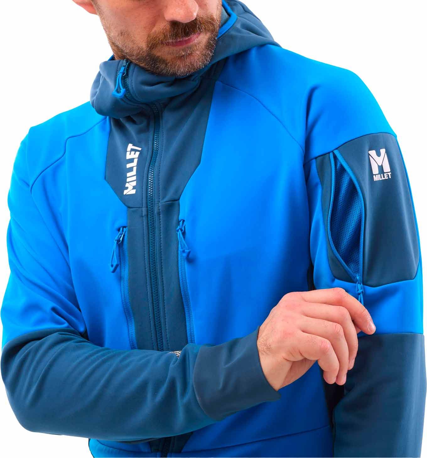 Le Pierra Ment Hoodie Icon Blue Dark Denim signé Millet est un haut technique masculin spécialement pensé pour l’ascension en ski de randonnée. Il allie un tissu shell ultra-fin, coupe-vent et hautement résistant à l’usure, afin de tenir tête aux conditions rudes de l’altitude. Des inserts Carvico® stretch, judicieusement disposés dans le dos et sous les bras, favorisent l’aération et offrent une amplitude maximale, garantissant un équilibre optimal entre chaleur et évacuation de la transpiration en phase d’intensité. La coupe raglan des bras préserve une mobilité totale, pour enchaîner les virées en toute souplesse. Conçue pour les exigences du ski de montagne, la pièce intègre une capuche enveloppante qui protège efficacement du froid et du vent. La fermeture éclair frontale permet un ajustement instantané de la ventilation et un enfilage sans effort, tandis que les deux vastes poches poitrine accueillent rapidement et en sécurité vos peaux de phoque. Une poche zippée sur la manche vient compléter le rangement des petits essentiels. Le logo réfléchissant Pierra Ment assure une meilleure visibilité en ambiance tamisée, et le bas légèrement rallongé à l’arrière, renforcé d’un grip silicone, maintient la veste en place tout en bloquant l’entrée de neige. Découvrir les collections Millet Pierra Ment Seneca Trilogy Ubic Wanaka G Trek Kamet Intense Découvrir les catégories associées Vestes ski de randonnée Vêtements techniques homme Vêtements ski de randonnée