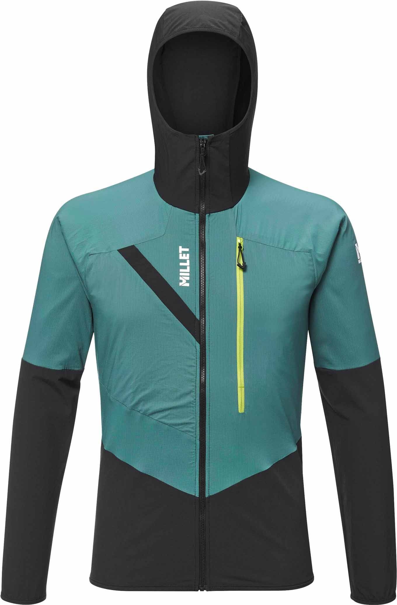 La veste technique Millet Rutor XCS Air Hoodie Bottle Black pour homme allie tissu X.C.S.™ stretch déperlant et zones TORAY® AIR STRETCH RIPSTOP pour la liberté de mouvement et la résistance à l’abrasion, tandis que l’isolation POLARTEC® POWER DRY® sur la poitrine et les manches conserve la chaleur sans altérer la respirabilité.