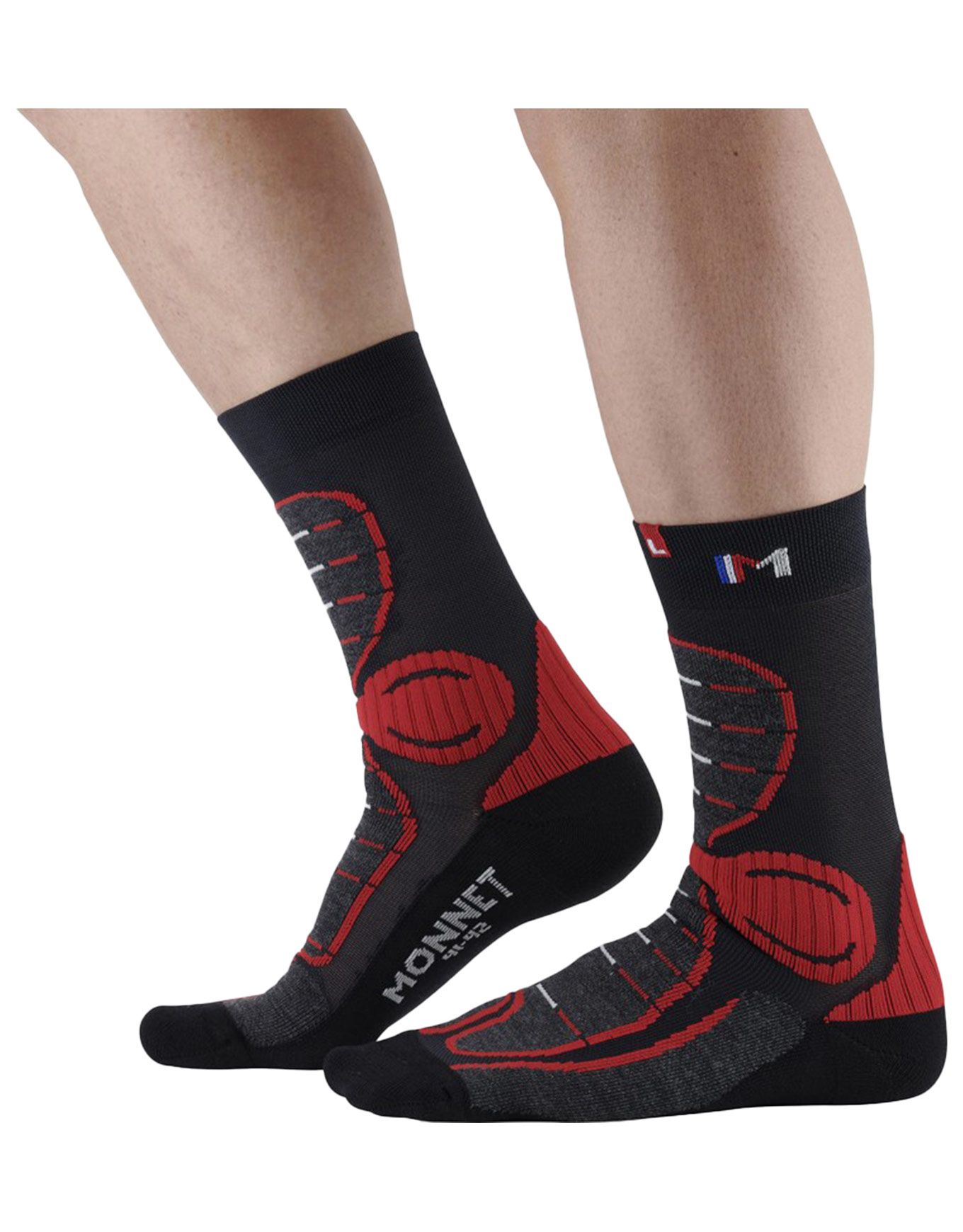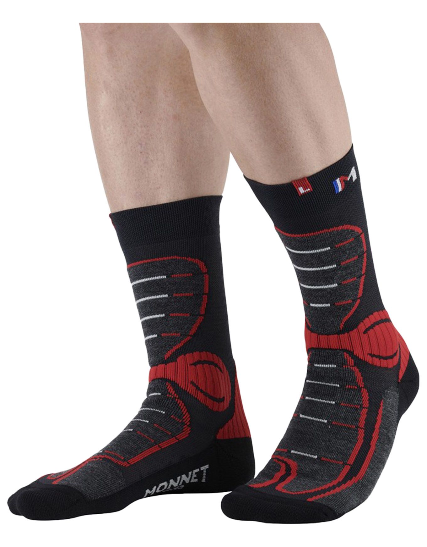 Chaussettes Monnet Energy Nordic Socks spécialement conçues pour le ski nordique, alliant chaleur, respirabilité et confort grâce à la laine mérinos, aux protections stratégiques Ergonomic Foot Concept© et à la technologie Friction Free® prévenant les ampoules.