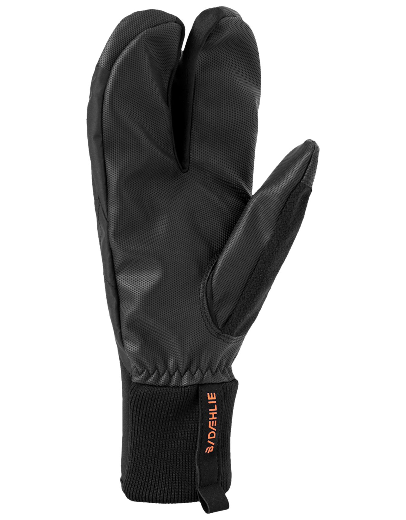 Gants 3 doigts unisexes Claw Pace Black Dæhlie pour ski nordique par temps froid, doublure polaire, manchette néoprène, paume cuir synthétique, essuie-nez intégré.