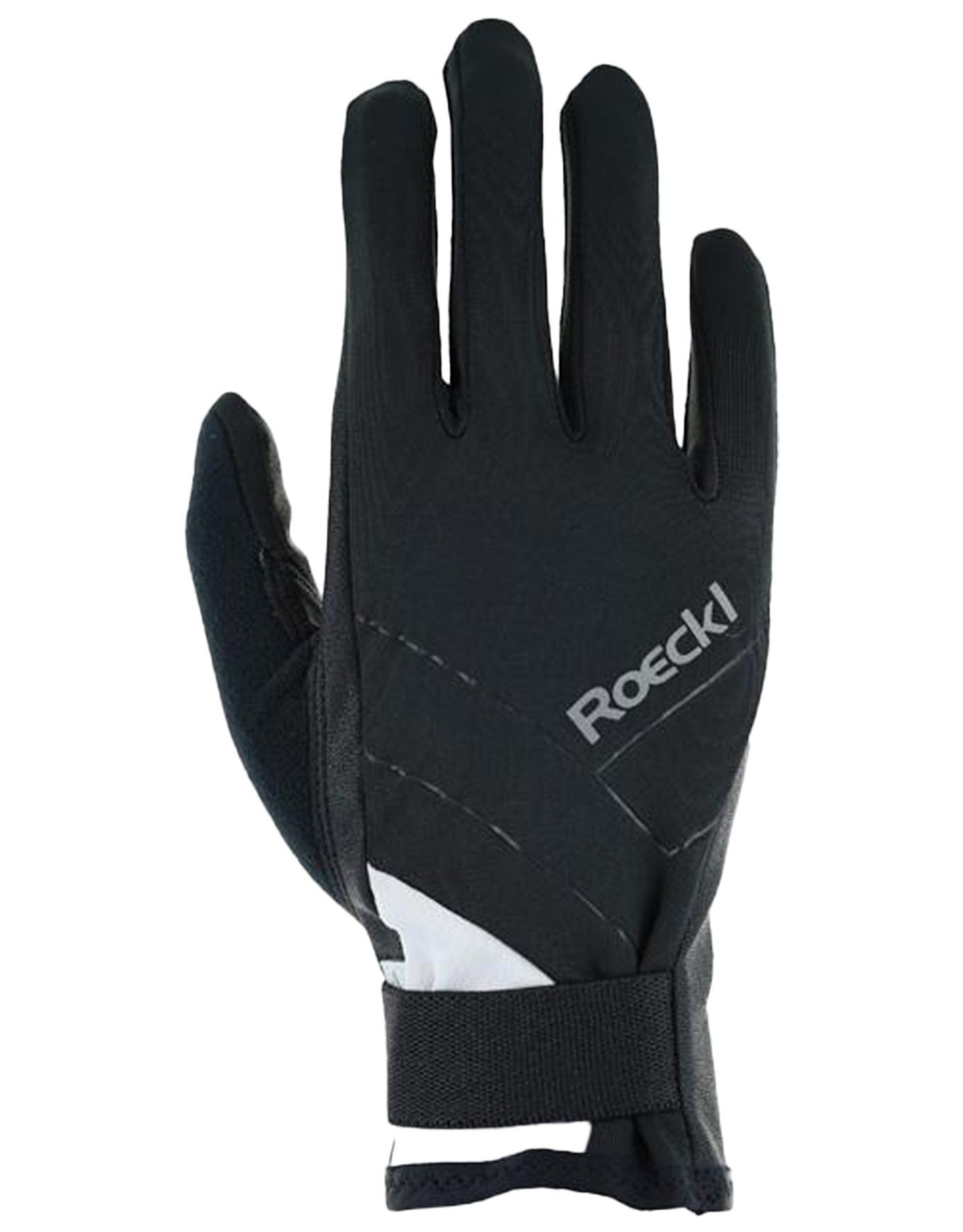 Gants Roeckl Lillby Black/White, coupe courte et fine, dos GORE-TEX WINDSTOPPER® coupe-vent, paume respirante et résistante, ajustement néoprène Velcro.