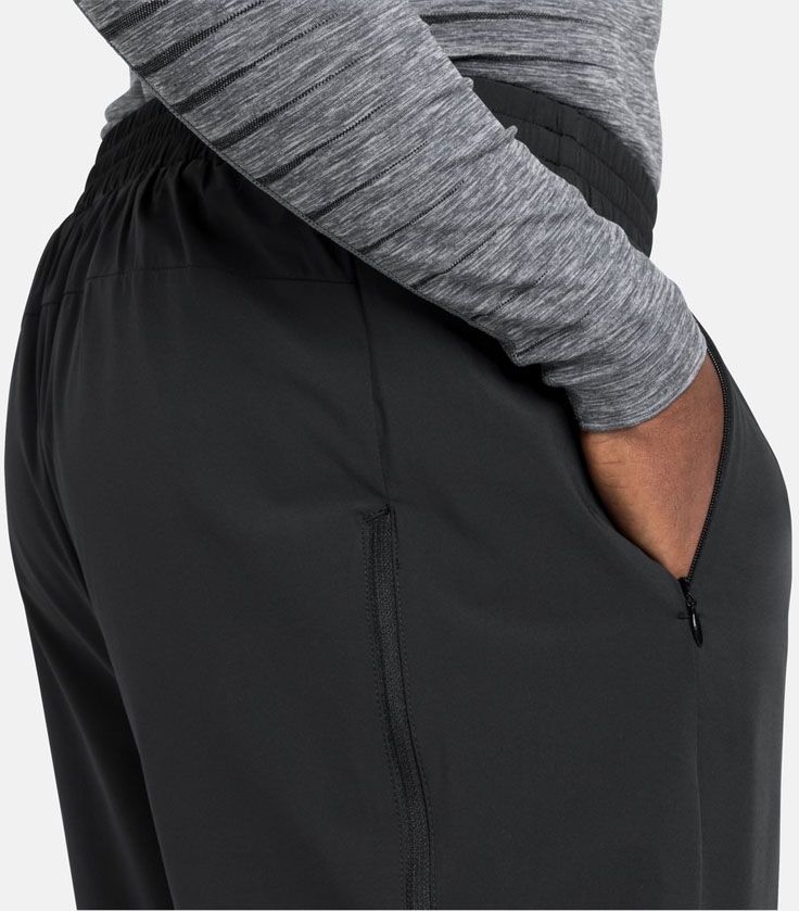 Pantalon ski nordique Odlo Windbreaker Black pour homme, coupe-vent respirant hydrofuge avec coutures thermocollées, zip 3/4 et tissu ultra-léger.