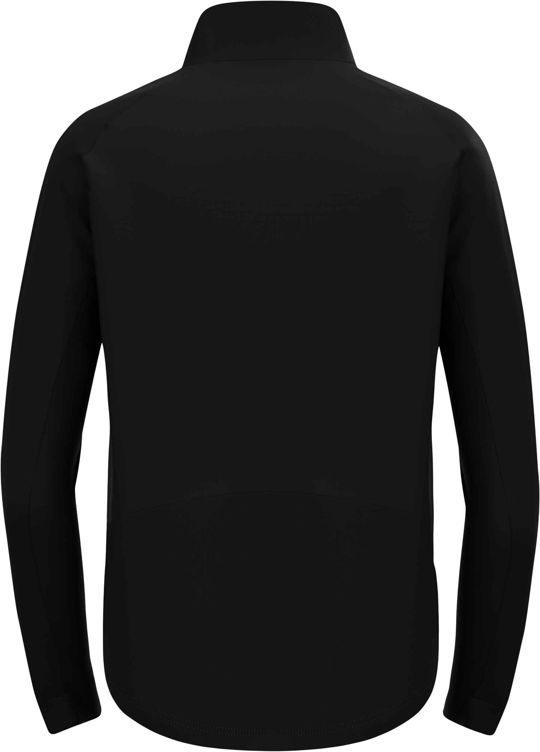 Veste softshell Odlo Brensholmen Black coupe-vent et déperlante avec jersey respirant au dos, coutures thermocollées, col montant protège-menton et poches zippées pour le ski de fond.
