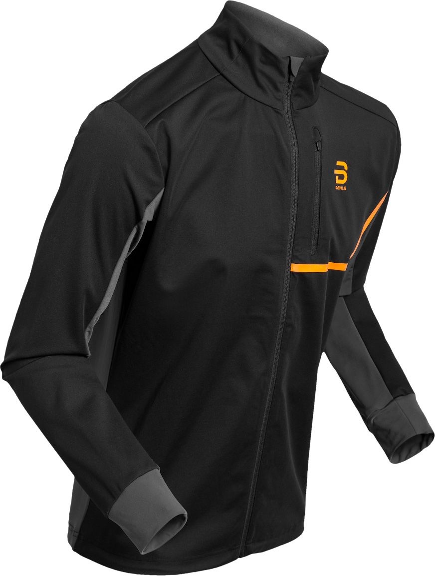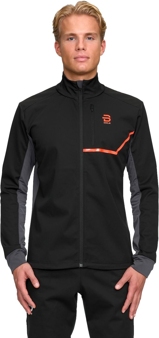 Veste technique Mobility Black Dæhlie pour homme, softshell 3 couches coupe-vent et déperlant, panneaux élastiques stratégiques et intérieur gratté au col pour le ski de fond actif par temps froid.