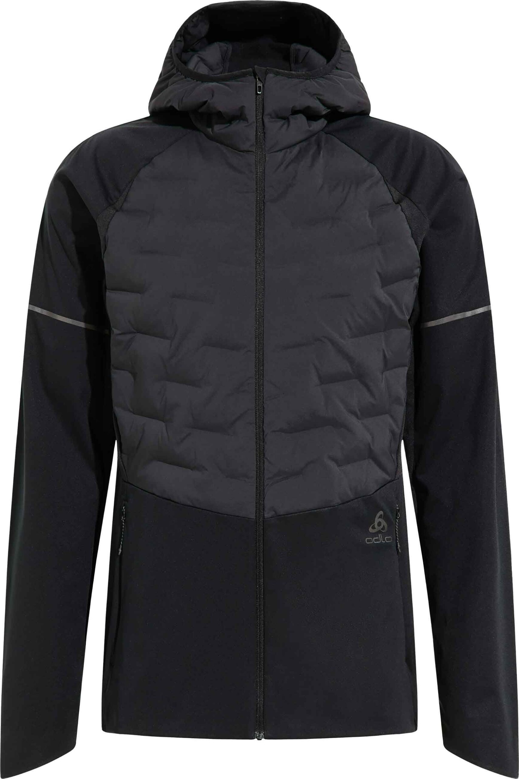 Veste running homme Odlo Zeroweight Insulator : isolation thermique Freudenberg écologique, softshell extensible déperlant et coupe-vent, capuche légèrement isolée et détails réfléchissants pour vos sorties par temps froid.